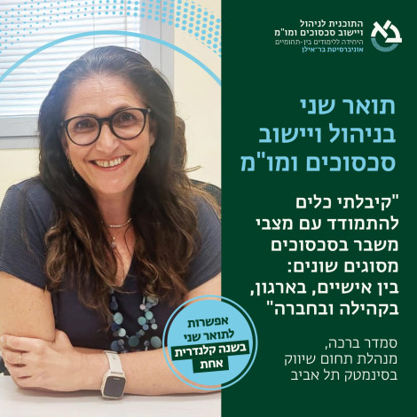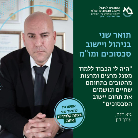 התוכנית ללימודי ניהול ויישוב סכסוכים ומשא ומתן הינה תוכנית בינתחומית לתארים מתקדמים (תואר שני ושלישי). הלימודים כוללים היכרות בינתחומית מקיפה עם נושא הסכסוך, התפתחותו והדרכים לניהולו וליישבו. הלימודים מתמקדים בסוגים שונים של סכסוכים ברמות חברתיות שונות: ברמה הבין - אישית, הארגונית, הבין-קבוצתית, הבין-קהילתית והבין-לאומית ובדרכי הטיפול בהם. תוכנית הלימודים משלבת לימודי תיאוריה ופרקטיקה. תואר שני ללא תזה (בשנה קלנדרית אחת או בשנתיים), או עם תזה. ראו פירוט מסלולים.