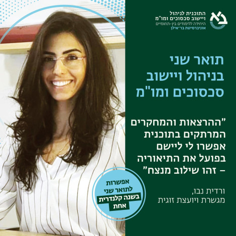 סכסוכים הם חלק בלתי נפרד מחיינו – הם מתעוררים בכל מקום, ביחסים בין אנשים, קבוצות ומדינות. התוכנית לתואר שני ושלישי בניהול ויישוב סכסוכים ומשא ומתן, היא בינתחומית ועוסקת בסוגי הסכסוכים השונים, בדינמיקה שלהם ובדרכים לניהולם וליישובם. הלימודים בתוכנית משלבים תיאוריה ופרקטיקה, וכוללים סדנאות מעשיות המקנות לסטודנטים כלים שימושיים לניהול משא ומתן, לבניית אמון בין צדדים בקונפליקט ולמניעת הסלמה. בתוכנית מסלולים לתואר שני ללא תזה (בשנה קלנדרית אחת או בשנתיים), לתואר שני עם תזה, ותואר שלישי (דוקטורט).