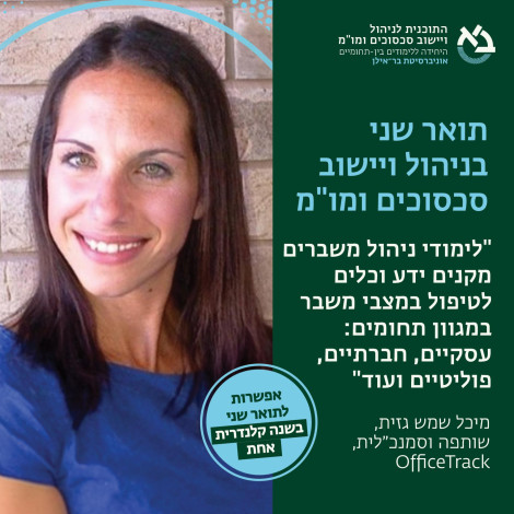 מיכל שמש גזיתשותפה וסמנכ"לית בחברת ההיי טק OfficeTrackהכירו את מיכל שמש גזית, בוגרת התוכנית לניהול ויישוב סכסוכים ומו"מ... -